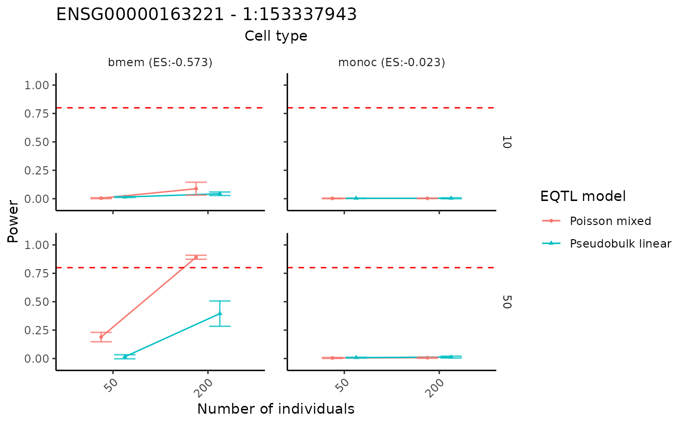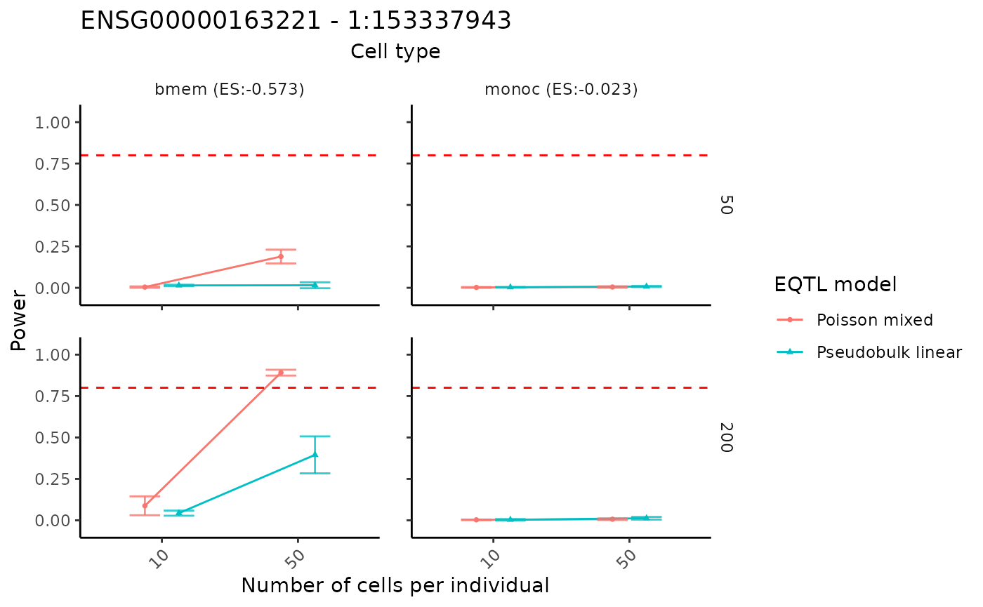 power analysis for a specific gene-SNP pair across selected cell types