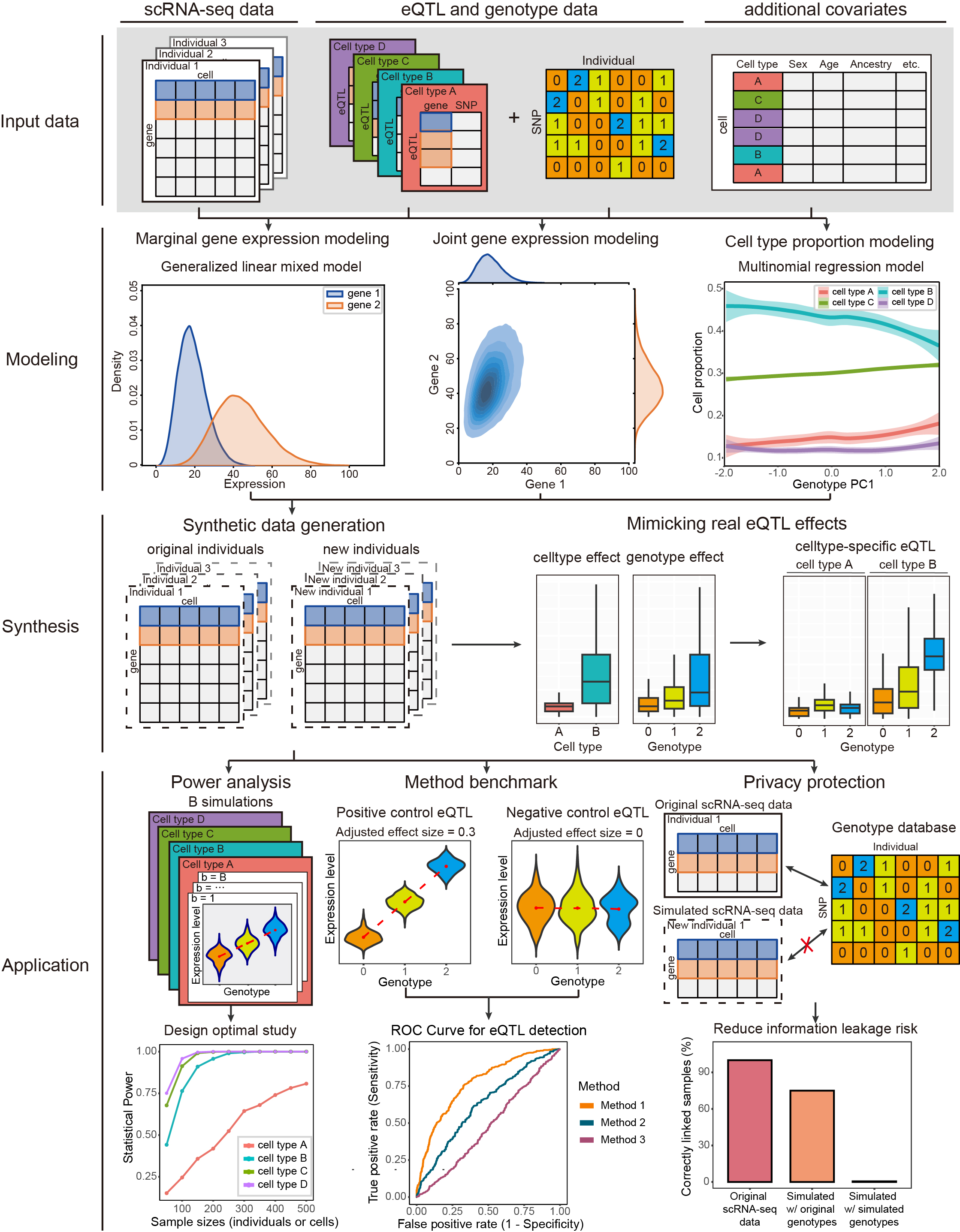 scDesignPop is a simulator for population-scale single-cell RNA-sequencing (scRNA-seq) data. By incorporating eQTL effects from genotype data with other covariates, scDesignPop has several key applications: